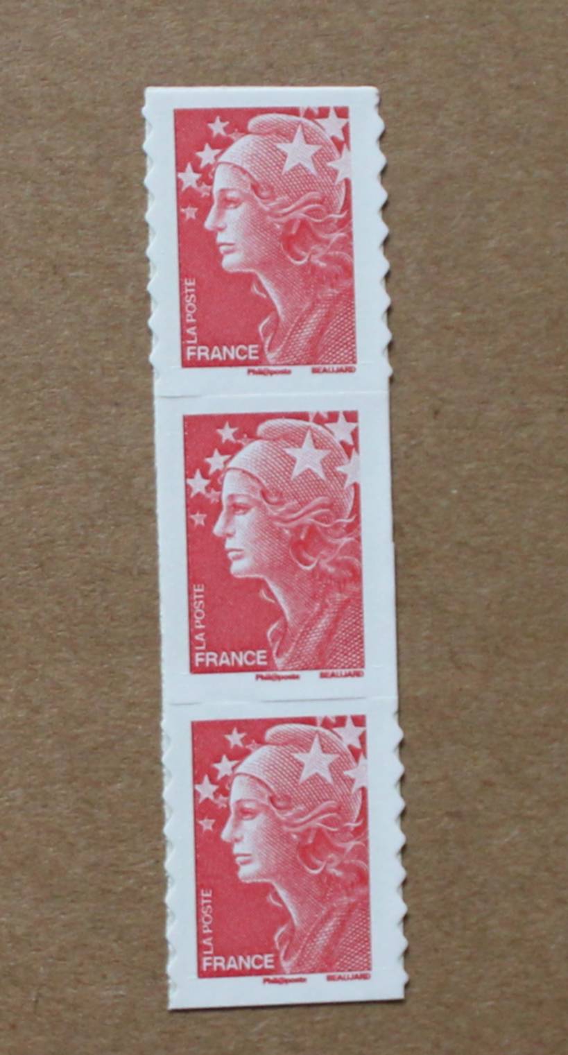 3 timbres autoadhésifs dont 1 non dentelé verticalement - Année 2008 / N° 175a
