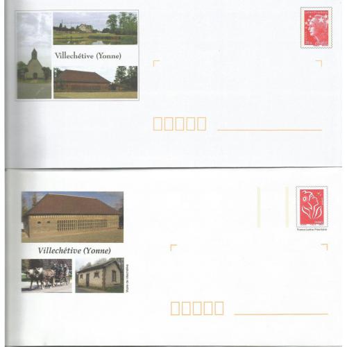 Lot de 2 Prêt à Poster PAP " VILLECHETIVE YONNE - Calèche et Chevaux, vues diverses" Neufs (Rep. Beaujard et Lamouche)