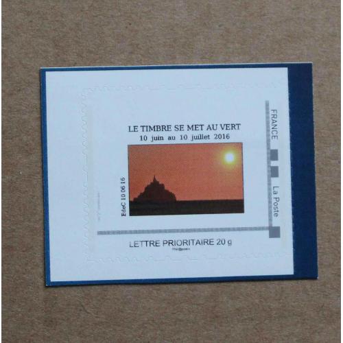 1 timbre autocollant LETTRE PRIORITAIRE 20 g (dents de droite entrant dans le bord de feuille)