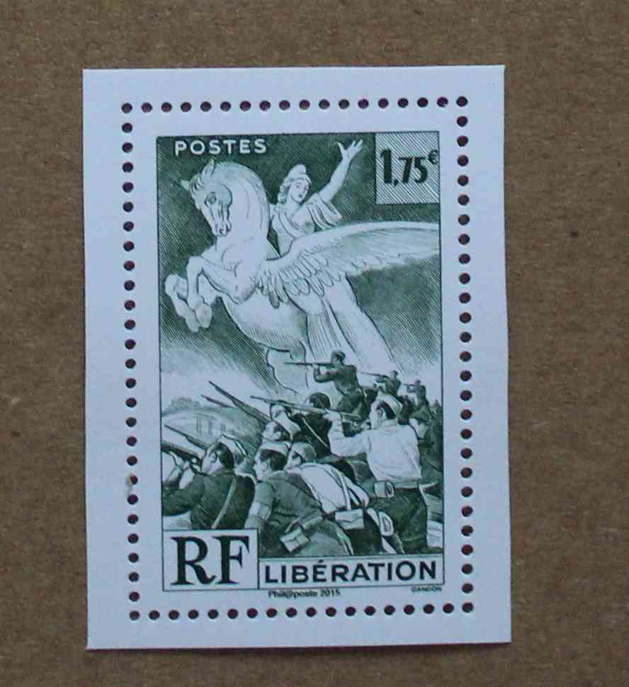 Timbre imprimé en taille-douce provenant d'un feuillet de 5 timbres de couleur différente.